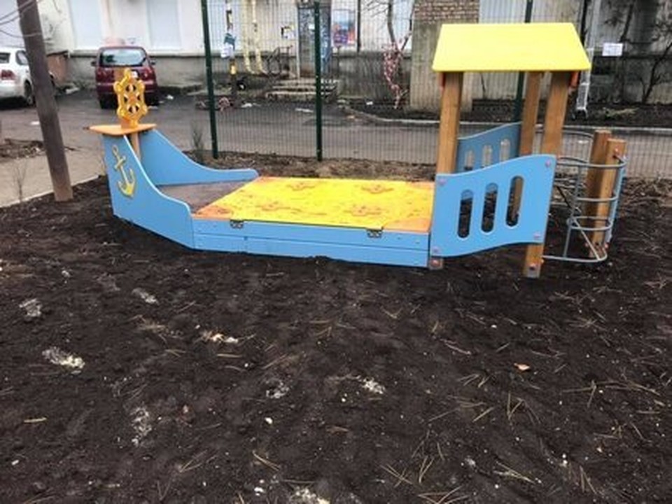 ![]() Во дворе жилого многоэтажного дома в Симферополе по улице Гайдара установили детскую площадку прямо на грязи. Фотографии с «грязевыми кораблем» попали в соцсети и очень удивили жителей столицы.